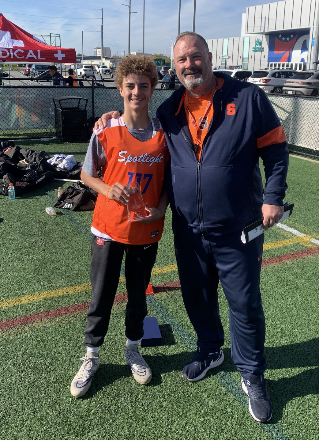 Bryson with Dave Pietramala at the Goaliesmith showcase event where Bryson won MVP.