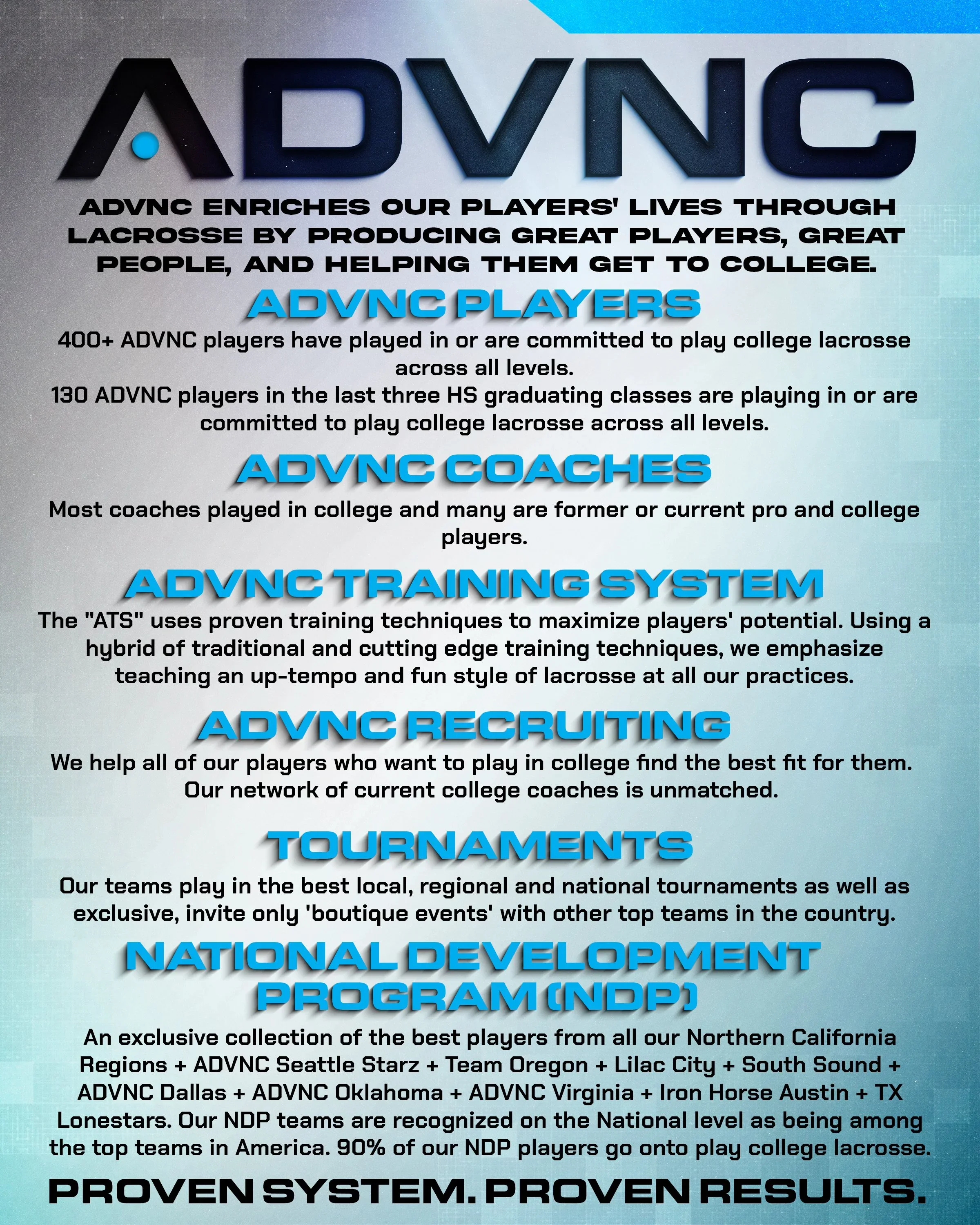 General inquires? Train@advnclacrosse.com