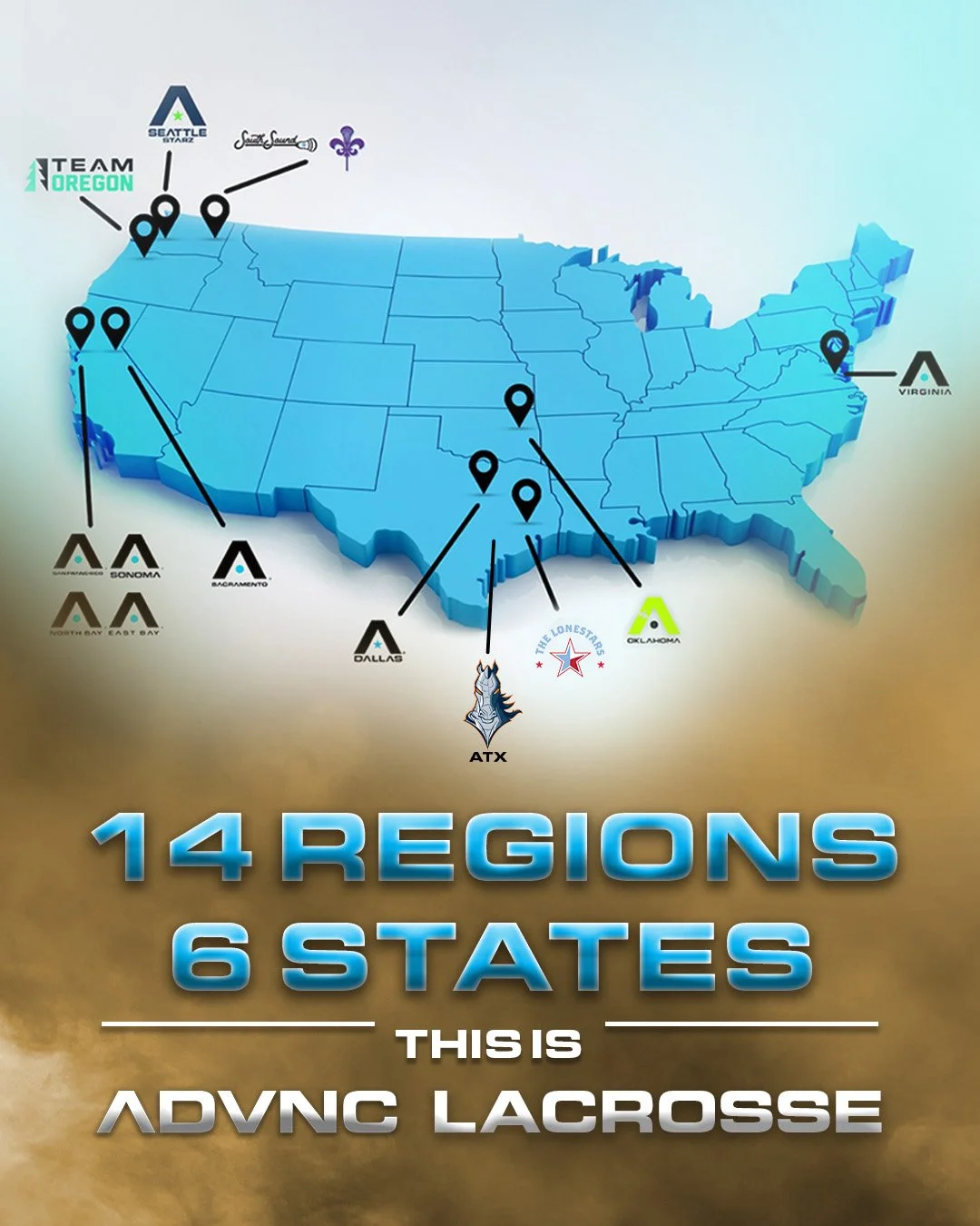 ADVNC Lacrosse has grown to include five regions in Northern California, ADVNC San Francisco, ADVNC East Bay, ADVNC North Bay, ADVNC Sonoma/Napa & ADVNC Sacramento. ADVNC has grown to now include ADVNC Dallas & ADVNC Virginia. ADVNC is also partners with Seattle Starz, Team Oregon, South Sound, Lilac City, Impulse and Houston Lacrosse Club.